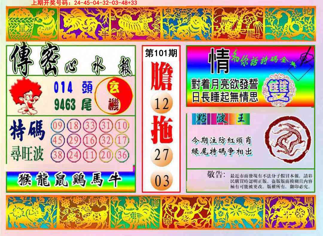 101期⑤肖 鸡龙狗猪马 开:00