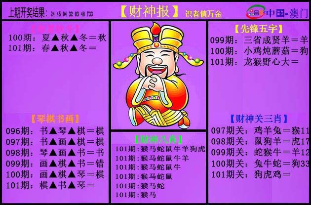 初选帖 101期:【钱多多多】●【平特二连】 高手发表 钱多多
